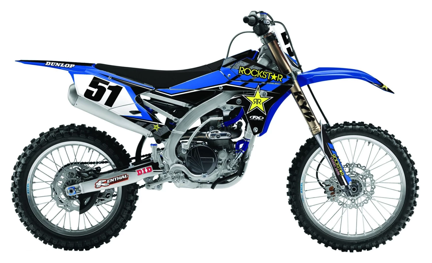 After years of testing and working hand in hand with companies like 3M, Factory Effex has been able to create graphics that are durable, easy to install, and offer the very best in value and performance. The FX Rockstar Complete Kit includes graphics for both front and rear fenders, radiator shrouds, air box, swing arm, and lower fork covers.