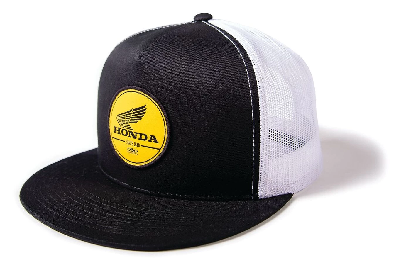 The Honda Gold Label Snapback Hat from Factory Effex features a trucker style and mesh back panels for ventilation.Â