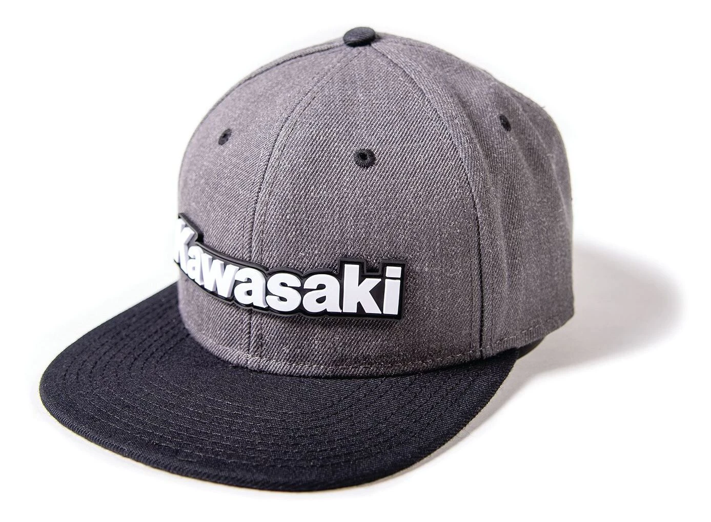 The Kawasaki Bold Snapback Hat from Factory Effex features full cloth, classic baseball-style construction and front Kawasaki badge.Â