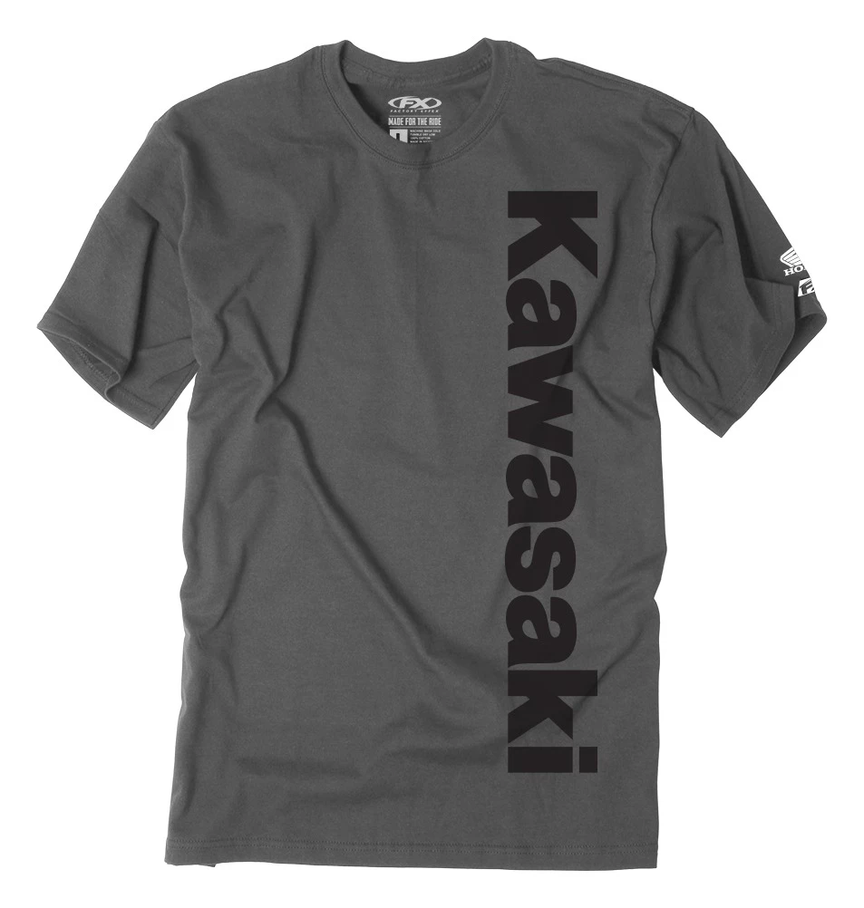 The Kawasaki Vertical T-Shirt from Factory Effex use a supremely comfortable, premium tee for the basis of the company’s signature MX graphics.